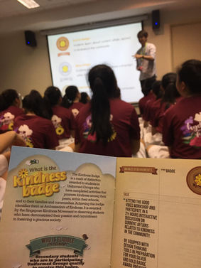 The Singapore Kindness Badge is a mark of distinction awarded to students of Uniformed Groups that have completed projects or tasks that promotes kindness and graciousness among their peers, family or community. This badge encourages our guides to foster stronger sense of community awareness and spread kindness in society through projects or campaigns.